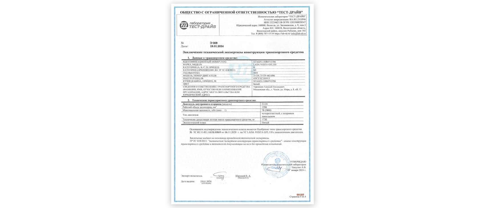 Заключение об эко классе двигателя ТС подтверждает, что ТС, а также установленный на нем двигатель, соответствуют определенному эко классу безопасности. Данный документ уполномочены выдавать только аккредитованные лаборатории.